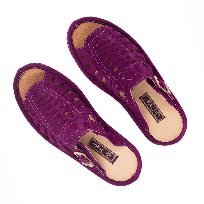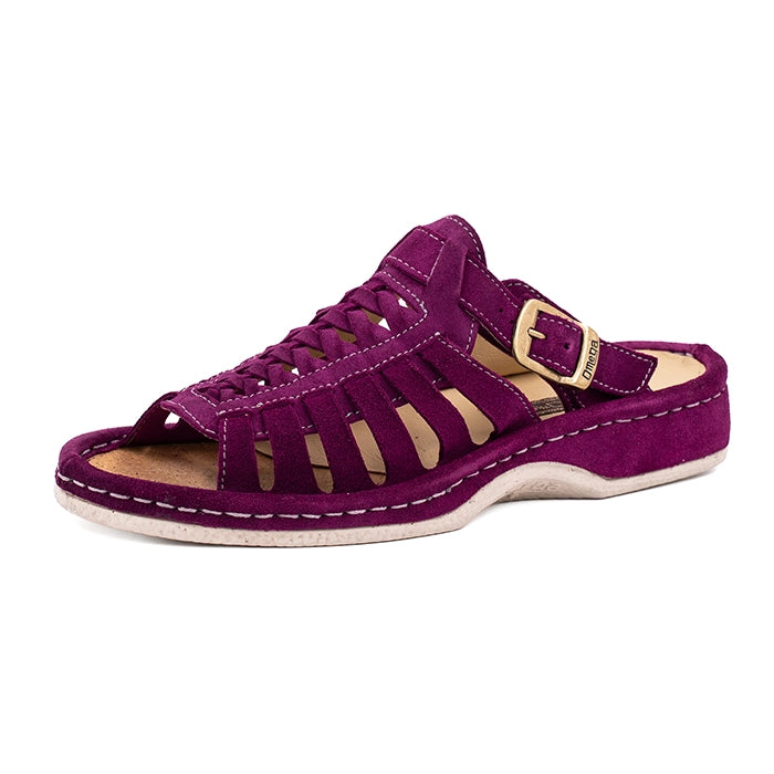 OMOM389 : Leather Push-in Sandal in Cerise Suede